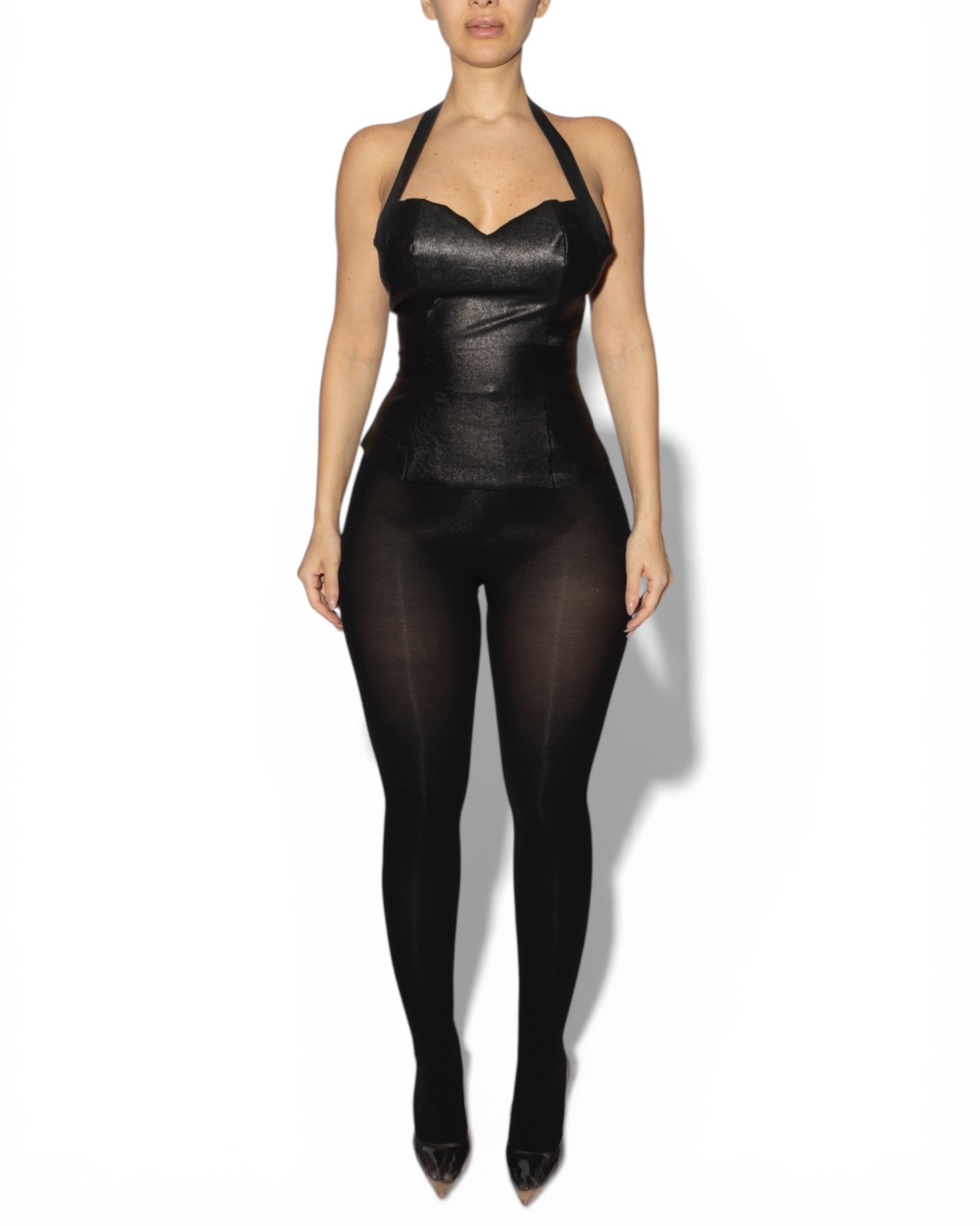 KARINA PLEATHER TOP